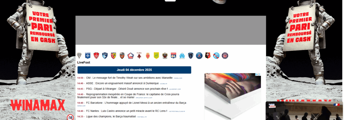 Live Foot c'est l'actualité mercato du football et des transferts. Livefoot c'est aussi les scores et résultats de matchs de football